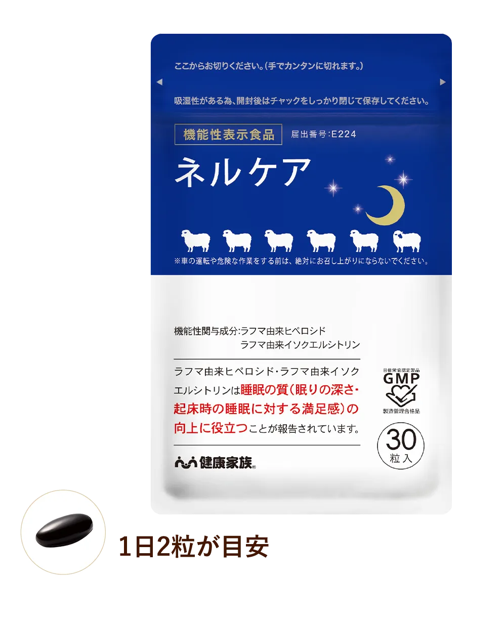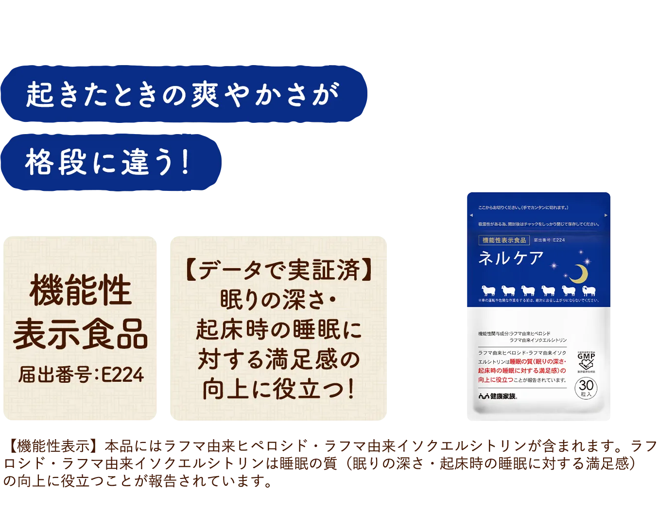 ■〈ネルケア〉の機能性表示食品届出内容については、こちらから「届出番号:E224」で検索してください。睡眠の質を