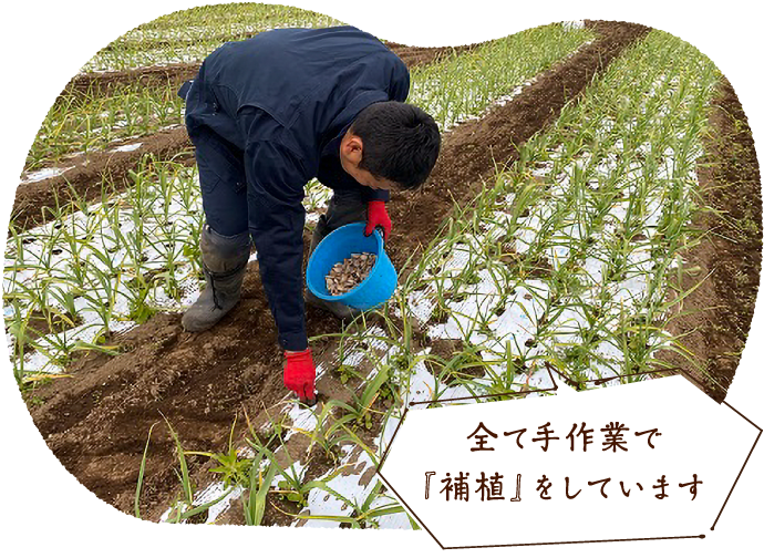 補植は大変な作業ではありますが、にんにくの収量を上げるために非常に大切です!