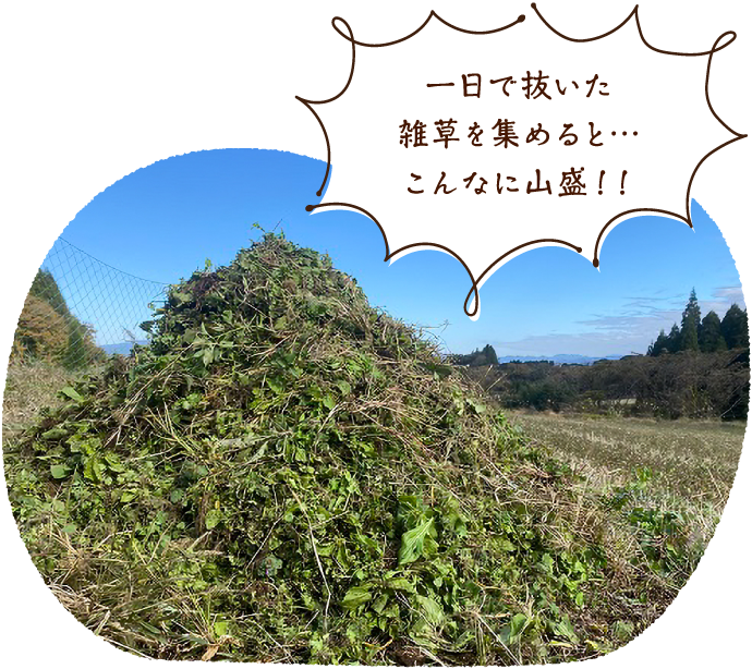 一日かけて抜いた雑草は、文字通り山盛りになっていました!